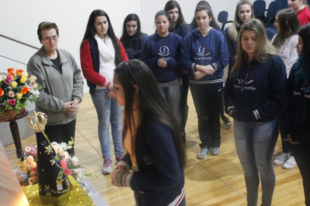 Na segunda-feira (13), todos os alunos do Colégio, tiveram a oportunidade de fazer uma visita e sua oração a Padroeira do Brasil. O local escolhido foi o Salão de Atos do Colégio. Este momento de fé e devoção foi dinamizado pela Irmã Ines Razera, coordenadora da Pastoral Escolar, que explicou a cada turma como foi encontrada a imagem de Nossa Senhora Aparecida, rezou e pediu bênçãos a todos os alunos e a família Bom Conselho. Pela manhã, Diego Tonet, que também faz parte do Setor da Pastoral Escolar, fez este mesmo trabalho com os alunos da manhã.