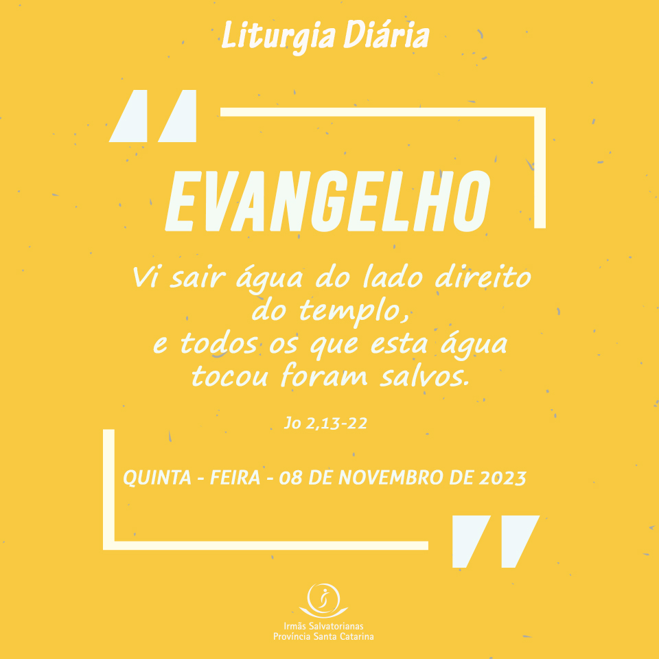 Leitura da profecia de Ezequiel – Naqueles dias, 1o homem fez-me voltar até a entrada do templo, e eis que saía água da sua parte subterrânea na direção leste, porque o templo estava voltado para o oriente; a água corria do lado direito do templo, a sul do altar. 2Ele fez-me sair pela porta que dá para o norte e fez-me dar uma volta por fora até a porta que dá para o leste, onde eu vi a água jorrando do lado direito. 8Então ele me disse: “Estas águas correm para a região oriental, descem para o vale do Jordão, desembocam nas águas salgadas do mar, e elas se tornarão saudáveis. 9Aonde o rio chegar, todos os animais que ali se movem poderão viver. Haverá peixes em quantidade, pois ali desembocam as águas que trazem saúde; e haverá vida aonde chegar o rio. 12Nas margens junto ao rio, de ambos os lados, crescerá toda espécie de árvores frutíferas; suas folhas não murcharão, e seus frutos jamais se acabarão: cada mês darão novos frutos, pois as águas que banham as árvores saem do santuário. Seus frutos servirão de alimento, e suas folhas serão remédio”. – Palavra do Senhor.