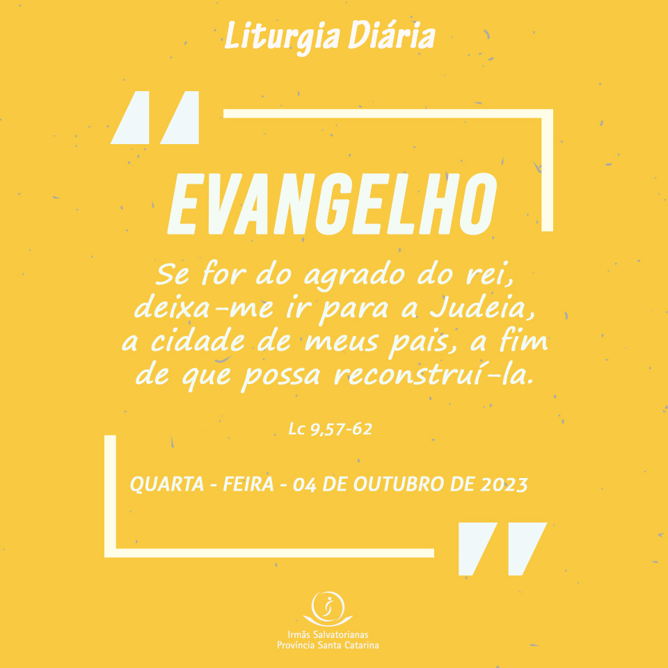 Proclamação do Evangelho de Jesus Cristo segundo Lucas – Naquele tempo, 57enquanto Jesus e seus discípulos caminhavam, alguém na estrada disse a Jesus: “Eu te seguirei para onde quer que fores”. 58Jesus lhe respondeu: “As raposas têm tocas e os pássaros têm ninhos, mas o Filho do Homem não tem onde repousar a cabeça”. 59Jesus disse a outro: “Segue-me”. Este respondeu: “Deixa-me primeiro ir enterrar meu pai”. 60Jesus respondeu: “Deixa que os mortos enterrem os seus mortos; mas tu, vai anunciar o Reino de Deus”. 61Um outro ainda lhe disse: “Eu te seguirei, Senhor, mas deixa-me primeiro despedir-me dos meus familiares”. 62Jesus, porém, respondeu-lhe: “Quem põe a mão no arado e olha para trás não está apto para o Reino de Deus”. – Palavra da salvação.